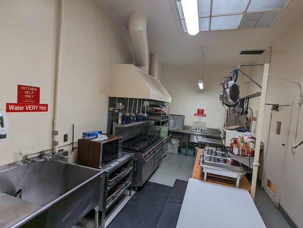 is supported by a large kitchen as well as enough tables and chairs to accommodate up to 120 guests. It also has it's own entrance from 169 Bartlett st. [40’ x 52’]