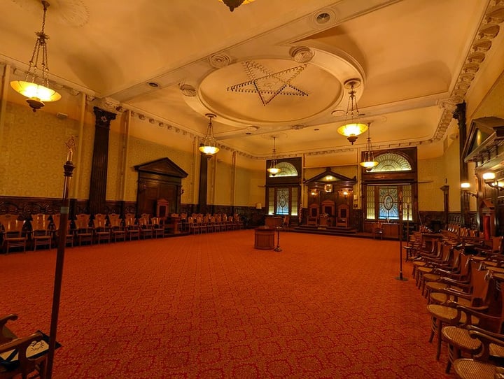 is the largest and most impressive outside of the Grand Lodge of California and remains an elegant, exceptional space